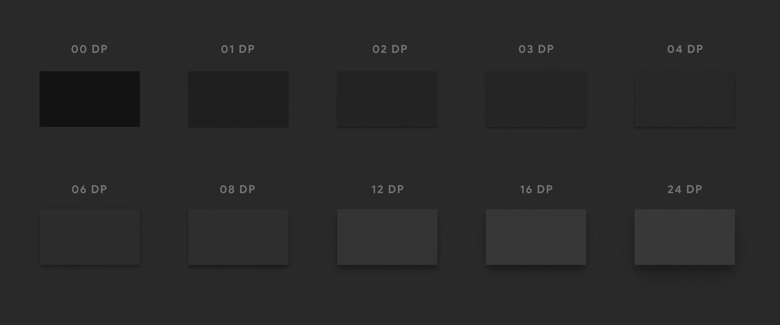 在明亮模式下,你很可能会使用阴影来表现视觉层次。这在黑暗模式中是不可行的,因为你根本看不到它们。相反,你应该使用灰色遮罩区分内容的不同层次。